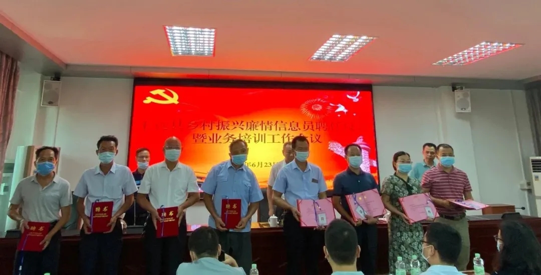 为推动巩固拓展脱贫攻坚成果同乡村振兴有效衔接,持续开展“我为群众办实事”实践活动,6月23日上午,县纪委监委召开全县乡村振兴廉情信息员聘任仪式暨业务培训工作会议。县纪委副书记、县监委副主任冯浪,县纪委监委相关同志、县农业农村局分管领导、各镇纪委书记及聘任的乡村振兴廉情信息员共70多人参加会议。