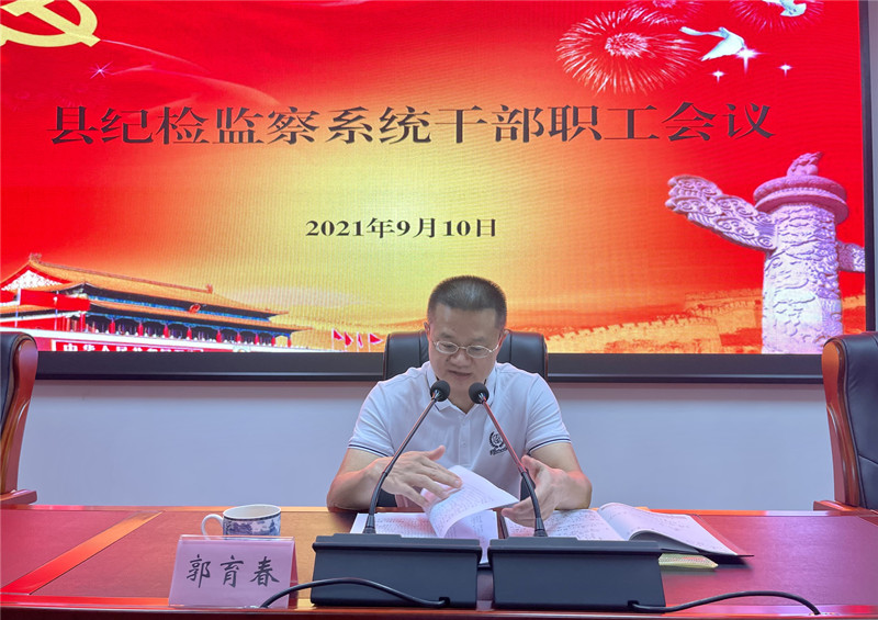 9月10日,县纪委监委召开全体干部职工会议,传达学习县委十三届十五次全会精神,县委常委、县纪委书记郭育春主持会议。